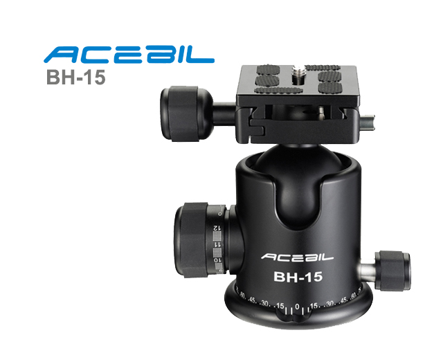 BH-15The BH-15 Professional Photo Ball Head feature a lightweight aluminum ball head a quick-release system. It includes a large locking knob to control the movement of the ball, and a separate knob for the 360° panning movement for complete precision.