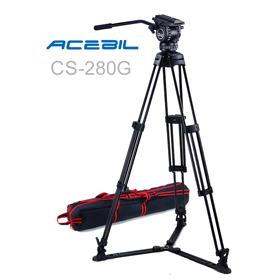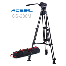 The CS-280M Professional Tripod System includes a 75mm CH2 fluid head, T750 aluminum tripod, MS-3 mid spreader, RF-3 rubber feet and an S-50 carry case.