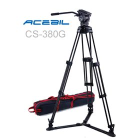 The CS-380M Professional Tripod System includes a 75mm CH3 fluid head, T750 aluminum tripod, MS-3 mid spreader, RF-3 rubber feet and an S-50 carry case.
