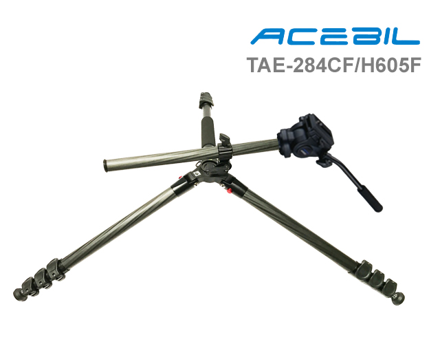 TAE-284CF/H605FThe TAE-284CF/H605F Professional Photo Tripod System features a 180 degree folding design for traveling. Built-in bubble level for precise positioning. Friction Control System allows you to modify the level of friction on the ball to accommodate changing equipment weight. Adjustable leg angles can be independently locked into place at three different angles and a Multi-Angle Central Column. Spring loaded weight hook allows assitional weight mounting stability during windy conditions. Alloy body minimizes weight. Dual threaded head platform assures compatibility with almost any tripod head and camera. Alloy body with carbon filber leg pipe & adjustable foot spike. Features large foam grips on all three legs for all-weather use.