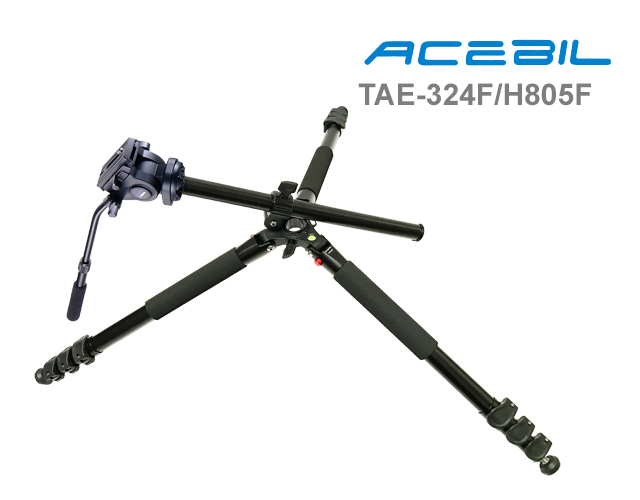 TAE-324F/H805FThe TAE-324F/H805F Professional Photo Tripod System features a 180 degree folding design for traveling. Built-in bubble level for precise positioning. Friction Control System allows you to modify the level of friction on the ball to accommodate changing equipment weight. Adjustable leg angles can be independently locked into place at three different angles and a Multi-Angle Central Column. Spring loaded weight hook allows assitional weight mounting stability during windy conditions. Alloy body minimizes weight. Dual threaded head platform assures compatibility with almost any tripod head and camera. Alloy body with aluminum leg pipe & adjustable foot spike. Features large foam grips on all three legs for all-weather use.